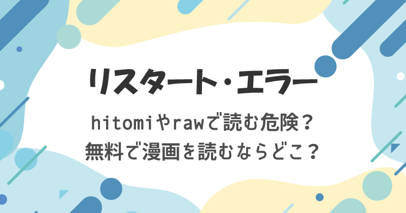 リスタート・エラーをhitomiやrawで読む危険?無料で漫画を読むならどこ?
